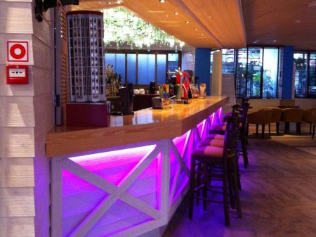 Realizamos diversidad de trabajos especiales a medidas para bares y restaurantes. Carpintería en madera de barras, forrado de paredes, paneles con fresados, estanterías, tarimas, etc.