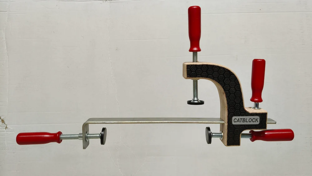 Catblock es una herramienta patentada e innovadora diseñada para facilitar la instalación de puertas y ventanas en block, sin necesidad de clavos, pistolas de clavos ni maquinaria eléctrica. Inventado por un profesional del sector con años de experiencia, Catblock permite fijar, nivelar y alinear el conjunto marco-puerta de forma segura, limpia y precisa, mejorando notablemente los tiempos de instalación y el acabado final.